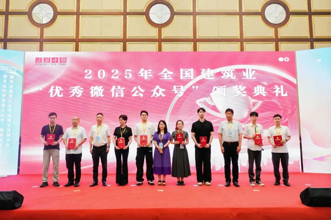 据悉,此次会议以“聚力新声量 共筑新未来”为主题,近300位来自全国各地建筑业协会、建筑企业的参会代表汇聚一堂,共同研讨当下行业的新媒体生态,分享交流新媒体运维经验。会议根据媒体影响力、发布文章质量和点击阅读数等多项权威指标,结合新榜提供的算法技术支持,经评委会综合评定,从全国范围内参与申报的数百家建筑行业自媒体微信公众号中,评选产生了2025年全国建筑业“具影响力”微信公众号、优 秀微信公众号,以及优 秀微信“十佳案例”榜单,并对获奖单位颁奖。
